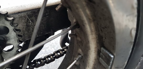 Miután hazajöttünk onnan, úgy döntöttem, hogy a hűséges öreg dög megérdemel végre egy profi ránézést és bejelentettem Szabó Gergőhöz Győrbe, mert tőle nemcsak csinálva, hanem megcsinálva jönnek el a motorok. Sokszor persze tetemes idő alatt, de a jó munkához idő kell, mint tudjuk. Már amikor hozzá indultam, észrevettem, hogy egy küllő eltört a hátsó kerékben, de mire Győrbe értem, már öt küllő lifegett. Kis sebességnél éreztem is, ahogy tángálódik a kerék. Kaptam egy kisebb szívinfarktust, de végül is, kibírta.
