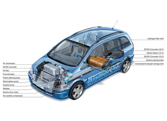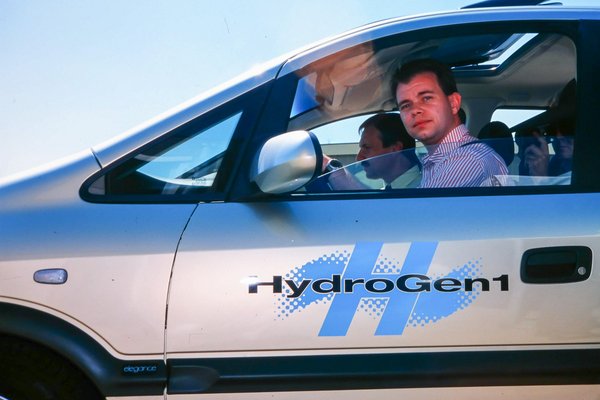 A program Brüsszel mellett, egy kis reptéren zajlott, ahol a General Motors a HydroGen-2 nevű prototípust mutatta be a sajtónak: nevéhez híven hidrogénnel üzemelt, amit tüzelőanyag-cellában a levegő oxigénjével egyesítve dihidrogén-oxidot (vizet) és áramot termelt. Ez az áram hajtotta a Zafira-bódéba épített villanymotort. Az autó mínusz 253 fokon(!) tárolt, cseppfolyós hidrogént tankolt, ami a tartályban folyamatosan forr, ami amúgy nem gond, simán kiengedik a környezetbe, hogy ne robbanjon fel a tartály. Vagyis az autó akkor is fogyaszt, amikor áll, csak akkor van bibi, ha leállítod a kocsit két hétre, és üres, amikor elindulnál... Mindamellett, hogy iszonyatos energiaigénye van az üzemanyag lehűtésének.