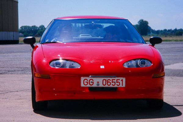 Egy idő után ki is fogyott a GM-es ember a témából, egyre kínosabb csendek voltak, ekkor kérdeztem meg, hogy ha már ennyire sok időnk lett, nem lehetne az EV1-et kipróbálni? A csóka erre olyan lazán vágta rá az igent, hogy én is meglepődtem. A többi újságíró is kíváncsian nézte, mi történik a tárlatnál: az elektromos Combót félretolták, hogy ki tudjon jönni az EV1, majd odahozták nekem, és beleültem.