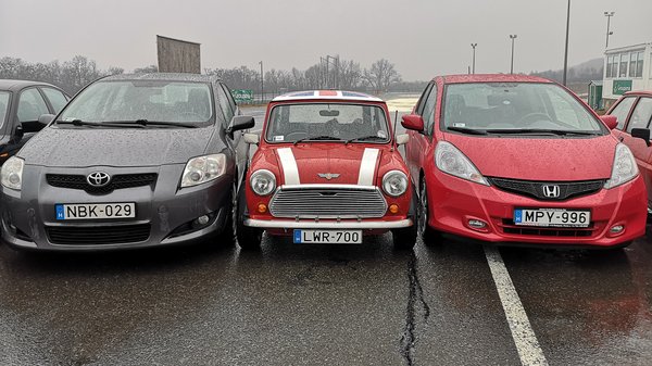 És nem maradt el a jutalom sem, az időjárás még akkor vasárnap engedélyezte a próbakört. És végre láttam! Úgyhogy mióta nyáron kitaláltuk ezt az ügyet a barátommal, majdnem fél éve, azóta először úgy igazán vezettem végre a Minit. Remekül ment minden, hangos és pattogós, ahogy kell, és azt is megtapasztaltam, hogy száz körül valahogy kioltják egymást a frekvenciák, csendesebbé és szinte nyugodttá válik az utazás. Ígéretes, mert ha lehet tartós 100-110 km/h tempót megőrülés nélkül tartani, azzal már az Alpok sincs elérhetetlen távolban.