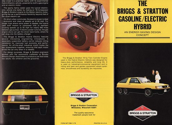 A Briggs & Stratton név leginkább kerti kisgépekből lehet ismerős, de a fűnyírók és kapálógépek benzinmotorjain túl is alkottak említésre méltót, például egy hatkerekű benzin-elektromos autót, a Briggs & Stratton Hybridet 1980-ban. Igaz, hogy csak egy 300 ezer dolláros promó-terméknek szánták, amivel a 18 lóerős kéthengeresüket reklámozták, de mivel a későbbi hibridek sem térnek el túlzottan a cég bő 40 éves koncepciójától, érdemes róla megemlékezni.
