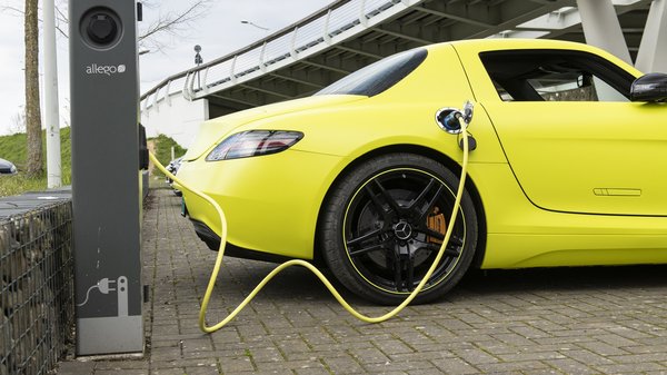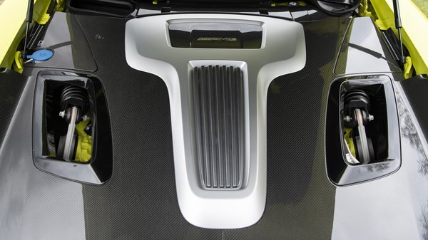 Érdekes a nyomórudas felfüggesztés is, de persze, az elektromos hajtás az igazán nagy furcsaság az autóban. Az SLS Electric Drive 400 V-os lítium-ion akkumulátora 12 darab 72 cellás modulból áll és egy karbon monocoqueban lakik részben az eredeti motor helyén, részben pedig a két utas között. A 60 kWh-s tömb súlya alulról karcolja az 550 kilót. Két töltés között az NEDC ciklus szerint úgy 250 kilométert képes megtenni. Mind a négy kerekét külön villanymotor hajtja, melyek 45 kg-osak és akár 13 ezret is forognak.