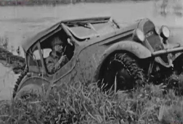 A BT harckocsik történetéről keresgéltem információkat a neten, amikor beleakadtam ebbe a furcsa kis járműbe. A Battle of Khalkhin Gol wikipédia-oldalon jött szembe, ami az oroszok és japánok csatározásairól szól a mandzsu-szovjet határon 1939-ből. Ahhoz képest, hogy milyen komoly harci eszközökkel illusztrálták az angol szöveg nagy részét, egész meglepően hatott ez a cuki kis kétüléses, vászontetős, bütykös kerekű roadster-szerűség, ami alatt magyarázó szövegként az állt, hogy „Zsákmányolt Type 95 felderítő autó.”