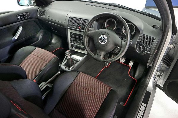 Ez a Golf IV GTI mellesleg a jubileumi 25 Jahre kiadás háromezer darabos limitált szériájának egyik darabja, de a különlegességét nem ez, és nem is a jobbkormányos kialakítás adja. Sokkal inkább az, hogy a 2001-es gyártás óta mindössze 12,8 kilométert tett meg. Nem évente, nem naponta, hanem összesen. Oké, igaz, hogy a forgalomba helyezés csak egy évvel később, 2002 októberében történt meg, de nyilván nem ez az extrém alacsony futás oka.