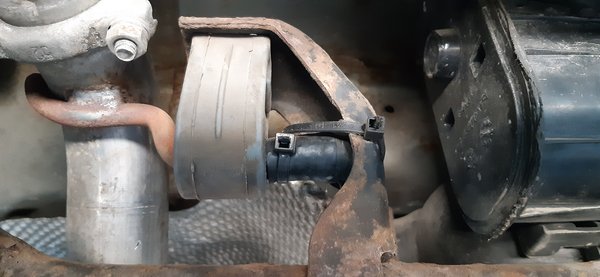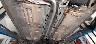 De a motornál fontosabb volt a kipufogó, mert ettől a kolompolástól igazi marhának éreztem magam a réten a gulyában. A baj az, hogy ez nem ST kipufogó, de legalábbis a hátsó dob semmiképp. A gyönyörűen tekergő ST leömlő még a helyén van, a katalizátor is, majd utána következik valamelyik sima Focus kipufogója. A hátsó dob pedig csapkodta a hátsó nyúlványt úthibákon. Próbáltam igazgatni a hátsó dobot, de az oldalra mozdulással volt a gond, meg hogy az egyik rögzítő vaskampó hozzá tudott érni a kasztnihoz egy kicsit előrébb. Úgyhogy két legyet ütöttem egy csapásra, a kampó végére húztam egy gumicsövet, majd az egészet hozzákötegelőztem a kampó konzoljához, ezáltal nem feszül semerre, de nem is tud lobogni oldalra a kipufogó. Szinte tökéletes lett, csak nagyon nagy úthibákon hallatszik néha egy kicsit, de 99%-ban csend lett, az meg nekem elég ennél az autónál. Nem akarom emiatt lecserélni a rendszert, sem a dobot, mert amúgy új, és nem is ordít, csak magas fordulaton, ami külön kedvemre való.