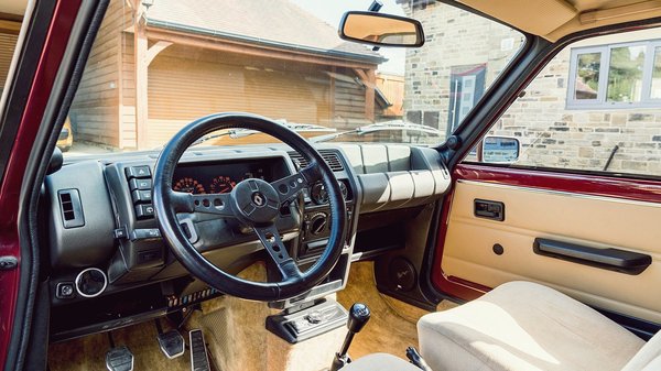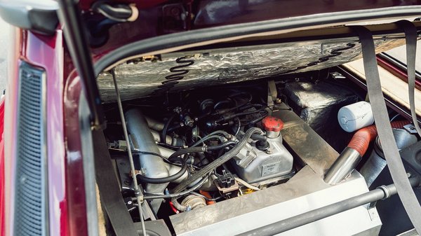 Ez a bordó autó is így került 1984-ben Amerikába, majd 2018-ban regisztrálták újra Angliában, ahol egy szép kis gyűjteménynek volt a része. Különlegessége nem csak a bordó szín és az aggasztóan csíramentes bézs belső, hanem a gyári tuningcsomag, amivel a teljesítmény közel 190 lóerőre nő. Az egész autó egyetlen oda nem illő pontja a modern Alpine rádió. Olyan autók között állt, mint a Porsche 911 Speedster, a Lamborghini Aventador, a Ford Sierra RS Corsworth és a Lancia Delta HF Integrale. Állapota néhány apró karctól, az évek során megfáradt műanyag elemtől eltekintve tökéletes, de ez talán nem meglepő kevesebb mint 28 ezer kilométerrel.