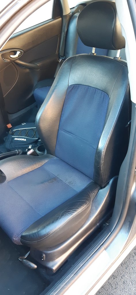Nos igen, nem akármilyen ülések vannak már benne, beszereztem a legdrágább gyári extrát, amit lehetett hozzá kérni annak idején. Nem pojácaságból, inkább kényszerből. Ebben az alap ST170 ülések voltak, amik elég jók, de az én hátamnak brutál kemények. Ekkoriban még nem nyomorodtam le két hónapra, de mivel gyári hibás vagyok, mindig is érzékeny voltam a kényelemre valamelyest. Utánajártam, hogy háromféle üléssel adták ezeket, volt még ezen kívül a full bőr, meg a félbőr Recaro. Utóbbi nézett ki a legjobban, és ez a legritkább is, úgyhogy természetesen erre pörgött rá a fordítva működő agyam. Ezekért már külföldön is ölik egymást, de felkínáltak itthon egy eladó szettet. Az ajtókárpit és a hátsó ülés mindegyikben ugyanaz, úgyhogy csak a két első ülést kellett cserélni, így máris megkaptam a legexkluzívabb ST170 belteret. Valóban ég és föld a két ülés közti különbség kényelemben és oldaltartásban is, külön poén a magasságának az állíthatósága. Az is ég és föld.