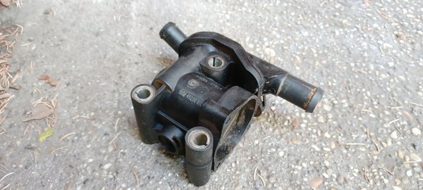 A múltkor Jóska megtalálta az ömlő hűtővíz forrását, egy fagydugó volt a bűnös, ám sajnos utána is enyhén ugyan, de csökkent a vízszint. Felvettem egy inget, hogy feltűrhessem az ingujjat, levettem, hogy nehogy piszkos legyen, majd nekiveselkedtem a probléma megoldásának. Elég sok hűtővíz kering egy motorban és körülötte, így először azt érdemes megnézni tapsztalataim szerint, hogy nem kifelé folyik-e el valahol a rendszerből. Észre is vettem nagy szakértelemmel, hogy a motor oldalán lévő műanyag vízcsőcsonk alatt odaszáradt hűtővíz nyomai voltak a váltón, meg némi friss nedv a csonkon. Rendben, tehát ki kell cserélni ezt a műanyag cuccot, ami egyébként a termosztátház is egyben. Természetesen nem tudtam visszafojtani a grimaszom, műanyag termosztátházzal nem találkoztam még életemben, eddig rendes japán autóim voltak a múltból, amiknél a tervezőknek még nemcsak lehetett, de szabadott is. Erre hirtelen olyan közegben találtam magam, amiben gyerekjáték-alapanyagból készülnek az alkatrészek. Na mindegy, ilyen szinten még engedélyezem magamnak az elkurvulást, vettem egy Febi termosztátházat, kidobtam a benne lévő noname termosztátot, majd raktam bele egy Gates-t, amit előtte persze beleraktam a piros lábosba főni tesztelésképp. Ezután jött a neheze...