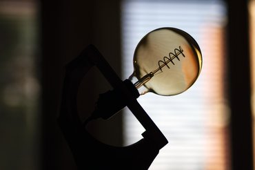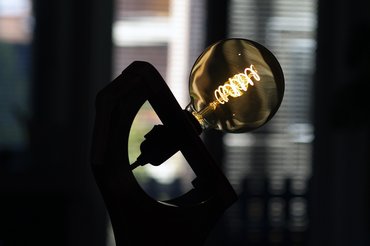 A kábelvégeket befuttattam egy kis ónnal, hogy jobban fogja a őket a foglalat, aztán összecsavaroztam őket, hogy nézzenek ki valahogyan. Az első pillanattól egy filament izzóval képzeltem el a projektet, végül egy 125-mm átmérőjű, spirálos darabra böktem rá - kb. 5000 forint, összesen tíz rugót fizettem a lámpás boltban, ami némileg vicces, mert ennyiért máshol kész lámpát adnak.