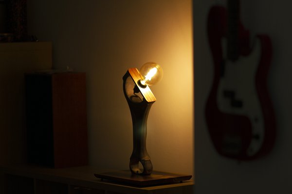 Nézegettem egy ideig, mire megláttam benne a lámpát, aztán szép lassan összeállt a fejemben, hogy mit akarok kihozni belőle. A padláson volt is két furcsa darab szélezetlen dióm, tipikusan az a fajta maradék, amit az ember nem dob ki, mert mégiscsak drága fa, de a méretük és az alakjuk miatt hasznosítani sem tudja őket, aztán lehet kerülgetni őket az idők végezetéig. Nézegettem, forgattam őket, több variáció is jól nézett ki, végül azt választottam, amikor mindkét szelet belseje felfelé néz, tehát az, ami eredetileg a fa középpontja felé esett, az ugyanis a fának a szebb és műszakilag jobb része. Az asztalosok külön szoktak erre figyelni, hogy a bútoroknál az nézzen kifelé.