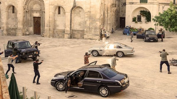 Még a legkisebb szerepekben is remek autók bukkannak fel Daniel Craig és Léa Seydoux menekülése közben. Ott van a ‘90-es évek fantasztikus Maserati Quattroportéja és a csodálatos Lancia Thesis, de felbukkan egy csapatnyi kompresszoros V6-tal töltött Jaguar XF is. A fekete Jaguart valójában nem a DB5 csapdája dobta a levegőbe, de nem is a szokványos kábelen megrántós technikát alkalmazták, hanem az autóba szerelt, gombbal aktiválható nitrogén ágyút. Szóval ilyen autók előtt gépészkedett Bond az öreg DB5-ösben a szűk, köves utcákon, amiken irdatlan nehéz nagy tempóval úton tartani az autókat.