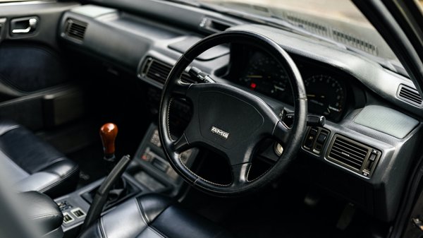 125 ezer kilométerrel és sérülésmentes karosszériájával ez a Galant AMG rettentően kívánatos egzotikum. A szürke betétes bőrkárpitjával és a Nardi fa váltógombbal együtt nagyon jól hozza a korszak hangulatát, még a német fűszerezésen is nagyon átjön a tipikus japán finommechanika.