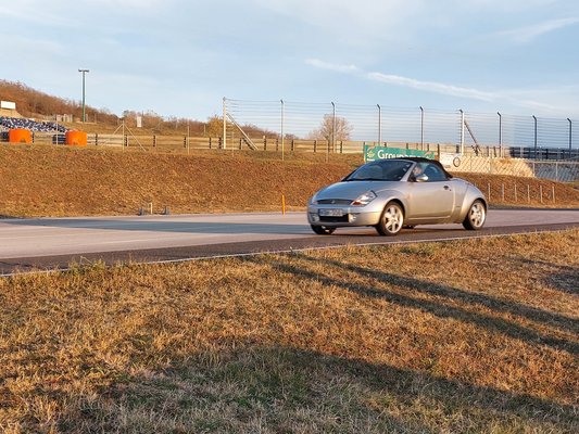 A helyzet kicsit olyan, mint konvojban menni nyaralni: mindenkinél van egy walkie-talkie, alacsony frekvencián serceg az izgalom, miközben a hozzáértők azt magyarázzák, hogyan kell felhajtani a kompra. Autó alapján azonosít és egyenként szólít az adott pályához tartozó instruktor, indulhatsz a Superbével, szép volt azzal a Lagunával, az pedig külön pozitívum, hogy kellő mértékben ismerik is a típusokat, releváns kommentekkel tudják okosítani a tulajokat. A magamfajta lámpalázasoknak elsőre frusztráló lehet, hogy az egyes csoportok egyetlen csatornán hallgatják az instruktor kommentjeit, ezenközben mindenki kitekert nyakkal, az ajtóra könyökölve bámulja az épp a pályán kalácsot fonó sofőrt. De ez így jó, egymás hibáiból legalább annyit lehet tanulni, mint a sajátokból.