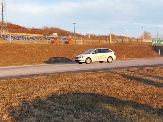 Csapó egy, Hungaroring. A pálya üres, csak a gokartosok és a falevelek zümmögnek, mi az egyik szervezői Skodát követve, libasorban gurulunk a Ring belseje felé, ott van ugyanis a Groupama tanpályája. Betonplaccok balról és jobbról, a köztük vezető aszfaltcsíkon, háromszor tízes csoportokban sorakozunk fel. A kép vegyes, a madártej színű Fiat Seicentótól kezdve a Mitsubishi L200-on át a Nissan 370Z-ig van minden. Az instruktoroknak is üdítő a változatosság, a flottás oktatásokon sorba kötve tapossák egymás sarkát a klónozott fehér Octaviák. Én a kettes csoportba kerülök, előttem egy új Corolla kombi, alattam a vitéz kettes Prius, a sor végén meg egy hármas, lehetnénk akár hibrid gittegylet, de igazából mindenki szimpatikus arc: alázatot, de minimum egészséges önértékelést feltételez, hogy itt vannak - esetleg egy rettegő utas finom ajándék-érzékét - , az meg bárkiben tök pozitív.