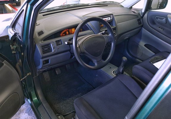 A new age jegyében digitális a műszeregység, és maga a műszerfal tök szimmetrikus. Az ívelt oldalú háromszög mélyedés, ahol a műszer csücsül, az utas előtt is megvan, csak műanyag burkolat fedi. Amúgy 2001 táján inkább kissé vicces volt ez a műszer, mert a Fiat Tipo/Tempra már meg is szűnt, ahol ezeket még menőnek láttuk. A műszerfal anyagát vélhetően űrrepülőgépek szárnyainak a belépőéleihez fejlesztették ki, olyan kemény, de egy korrupt NASA-beszerző mégis inkább valami kerámia mellett döntött. Hiba volt. Kétoldalt viszont a levegőrostélyok egy az egyben a K11-es Bakancs-Micrából valók, azok jók is. Bezzeg a középsők (az lehet Suzuki-fejlesztés), ott a lamellák már össze vissza mozognak, nem együtt.