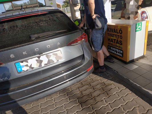 Hiába konspiráltunk a távolabbi kútoszloppal, a kasszás lány vagy látta a kamera képéről, vagy az egyik kollégája jelezte neki, hogy a hatoshoz német rendszám állt - kérdés nélkül a magasabb áron kaptuk a gázolajat.