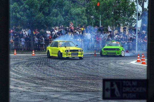 Egész hétvégén tartott a drifterek edzése és versenye, amit folyamatosan tömött lelátók előtt tartottak, évek óta az egyik legnépszerűbb program a kiállításon. Aki akart, némi pénzmagért cserébe a drifttaxik segítségével ki is próbálhatta, hogy milyen érzés profi pilóták mellett-mögött többszáz lóerővel gumit égetni és közben egy centit sem haladni egyenesen. A két legőrültebb vas Ámon Olivér S600-as bálnamercije és a #junkbuilds brigád még egy fokkal betegebb 300+ lóerős Nissan Serena kisbusza volt. Ők a taxisok táborát erősítették, és remekül jelzi, hogy mekkora igény volt erre, hogy szó szerint pörögtek egész hétvégén, mint a ringlispil.
