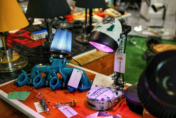 Elképesztő ötletességgel megvalósított használati és dísztárgyak tömkelege árasztotta el a Hungexpo csarnokait. Sok esetben ipari hulladékból rendszámtáblákból, rozsdás vasdarabokból, motorblokkból, hengerfejből alkotott műtárgyak színesítették a vásári palettát. Aki akar, hazavihetett asztali lámpától kezdve dohányzóasztalon át benzinkútig gyakorlatilag bármit, igazából csak a tárcánk vastagsága szabhatott határt. Az egyik árusnál láttam például rozsdás vaslemezbe gravírozott Trabant és egyéb típusok emblémáit viszkisüveg talapzattal, ami asztali lámpaként funkcionált, az egyedi igényeknek csak a képzelet szabhat határt. Sokkal jobb vásárfiának tűntek, mint egy huszonharmadik nyakbaakasztó vagy az unásig ismételgetett, kínos poénokat durrogtató matricák.