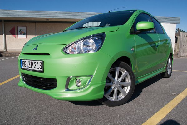 Ez az autó egy kavicsfelverődés egy normál méretű autó szélvédőjén - Mitsubishi Space Star