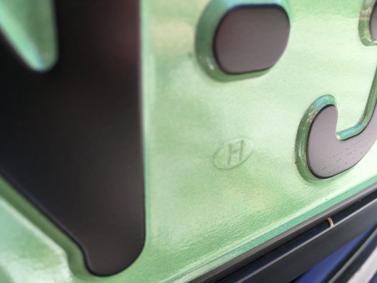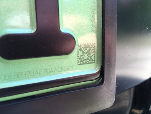Most viszont került a teljesen új formátumú táblára egy picike H betű is, pont olyan tojás alakú formában, mint az autók felségjelzés-matricája. Ezt még egy koszos, karcos táblán is azonnal be lehet azonosítani, hiszen kiemelkedik a tábla síkjából. Aztán került még a jobb alsó sarokba egy QR-kód, meg egy újabb számsor is - ránézésre ezek is lézerrel vannak a fóliába égetve.