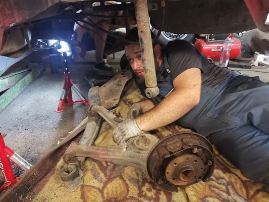 A hátsó traktus javítása nagyon sok bontással kezdődött. Kerekek, fékdobok és fékvezetékek le, ahogy a féltengelyek, középdobig a kipufogórendszer, majd a kardán és a diffi is: így lesz néhány óra alatt a guruló, működőképes autóból fél garázst elfoglaló roncs. Nem véletlenül klattyogott az egész hajtáslánc a kuplung markánsabb kiemelésekor: a diffitartó felső nagy szilent úgy porladt szét a kezeim között, mintha 37 éves lenne. Valószínűleg az is volt.