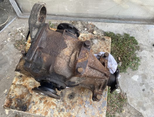 A diffi hátlapja szemcseszórást, háza sima csiszolást és festést fog kapni, ezen kívül az összes szimmeringet és a hátsó tömítést cserélem benne az olajkönnyezés miatt, egyébként nem búg, feszes is, jó állapotban van. Szintén minden rendben a féltengelyek körül, a csuklók megmaradnak, maguk a féltengelyek pedig szintén egy alapos tisztítást és festést kapnak.