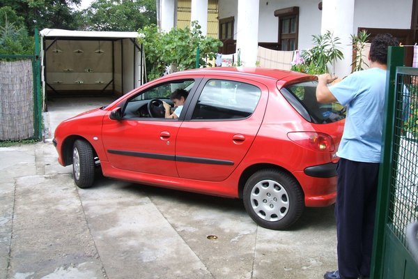 Megállt anyu a kis piros Peugeot mellett, és nem tágított. Aznap lefoglalózták, majd pár nap múlva átvehető volt. Emlékszem, hogy én mentem el vele, volt bennünk egy kis izgulás, de nem is csak emiatt, hanem mert egyrészt az első utunkon hazafelé egy talicskát vettünk, amit nagy nehezen pont be tudtunk rakni az autóba (így onnan én gyalog folytattam utamat – két sarok volt össz-vissz). Másrészt mert új autót nem hagyunk kint a ház előtt, viszont a beálláshoz egy kilenc méter hosszú bejárón kellett bejönni, amit annak idején, az 1900-as évek elején nem igazán autókra terveztek, emiatt igencsak szűk volt, behajtott tükröknél volt pár centi hely, egy speckó kerékvezető rendszer akadályozta meg, hogy ne tudjunk falnak menni, majd ha ezen túlestünk, egy összegyűrt zsebkendőnyi helyen kellett megfordulni. Mindketten leizzadtunk, de megcsináltuk, ügyes volt anyum.