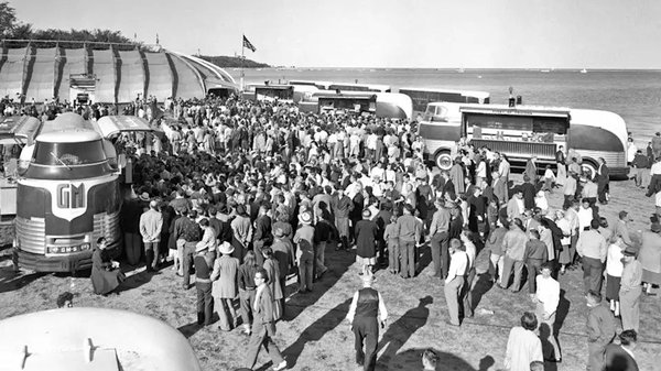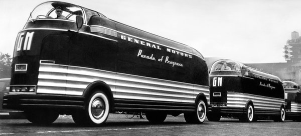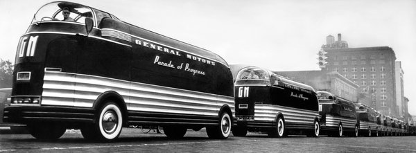 El is érkeztünk az 1939-es, New York-i világkiállításhoz, ahol annyit csavartak a dolgon, hogy nem csak létező újításokat ünnepeltek, hanem próbálták előre vetíteni a jövőt. Minden idők második legnagyobb amerikai világkiállítása a The world of tomorrow, azaz a holnap világa nevet kapta. A világkiállítás mellett létezett a Parade of progress, vagyis a haladás parádéja, amit nem először rendeztek meg, és tulajdonképpen egy roadshow volt. Ezt amúgy a General Motors-nál találták ki, középpontját olyan járművek adták, amik annyira színpadiasak és meghökkentő külsejűek lettek, hogy simán ellopták a rivaldafényt a roadshow-n kiállított, fő attrakciónak szánt tárgyak elől is.