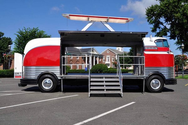 Ajtóból sok van rajta, és egyik se szokványos: a vezetőfülkébe a kaszni első negyedeinél lévő, szinte észrevehetetlen ajtókon lehet bejutni, de ennél is különlegesebbek a raktér ajtajai: mivel egy mozgó pavilonról van szó, a Futurliner oldalai több méter hosszan, egyben kinyithatók, így kerül elő maga a kiállítás. Összesen tizenkét Futurliner készült, mindegyikbe más attrakciót terveztek. Volt olyan, amiben egy Allison J-35-ös sugárhajtóművet mutattak be, de olyan is, amiben a még kísérleti stádiumban lévő mikrohullámú sütőt vagy épp a sztereó hanghatást prezentálták.
