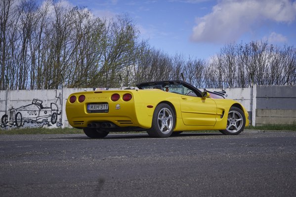 Gyerekként elvarázsolt a Corvette C4 nyúlánk alakja, majd újságíróként vezettem C6 tesztautót. Ez itt a kettő közötti, ötödik generáció, a Chevy Corvette C5, melyet 1997-től gyártottak 2004-ig. Még bukólámpás, de már van benne HUD meg kitörésgátló, és egy igazi, telivér sportautó, számos műszaki csemegével. Meg egy üvöltő V8-cal.