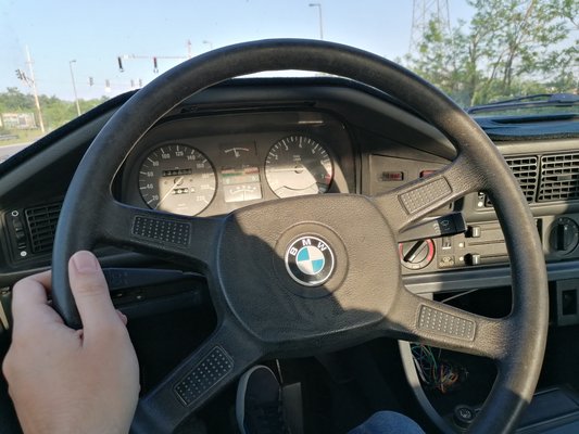 Gyanús volt, hogy valami nem kerek a motor hangjával, Dani persze egyből tudta, hogy egy szelephézag-állítás kell neki. Először aludt nála a Cápa, és ha már hosszabb ideig távol volt, néhány hiányzó apróságot, például egy szivargyújtót is kértem. A nagy hasonlóság ellenére az E34-ből származó kormány sem illik ebbe az 5-ösbe. A kormányváltó hangulat engem is utolért, megbeszéltük, hogy elcserélem egy korban hozzá illő négyküllősre. Mire Gyöngyivel érte mentünk, Dani egy másik autó kulcsait nyomta a kezembe. Erre hamar rájöttünk, mert a kulcstartó nem volt ismerős...
