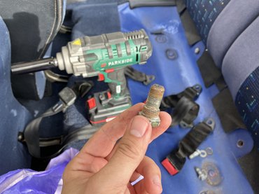Azt tudni kell, hogy korábban egyszer hátulról elkaphatták a kis franciát, néhol látszik is, hogy egy piros 205-ös hátuljából használtak fel elemeket, így sok minden újra lett fényezve. A festék pedig ha bekerül a menetekbe, onnantól nem lesz könnyű ki- és behajtani a csavarokat. Az ülés alatt, a csatok csavarjait meg se tudtam mozdítani, szerencsére beugrott, hogy van nekem a jó kis akksis Parkside kerékkulcsom, amit a kerekek levételéhez használom. Bevetettem hát, küzdött rendesen, de kiszedte mindkettőt. Innentől már csak a helyükre kellett rakni a csatokat és meg is voltunk. Az övek felszerelésénél hasonló gond volt a felvitt extra festékrétegekkel, azonban itt inkább a csavarok betekerése jelentett problémát. Az autó hátuljában van egy kis üreg, ahova speciális nőgyógyászi képességekkel felvértezve lehet csak benyúlni, másik kézzel tartani kell az öv konzolját és közben a kis lyukban valahogy betekerni a csavart a helyére egy megfelelő méretű villáskulccsal, aminek nagyjából nulla a mozgástere. Mire mindkét oldalon minden a helyére ment, jót küzdöttem. Az eredmény viszont felbecsülhetetlen, este ezzel mentünk usziba.