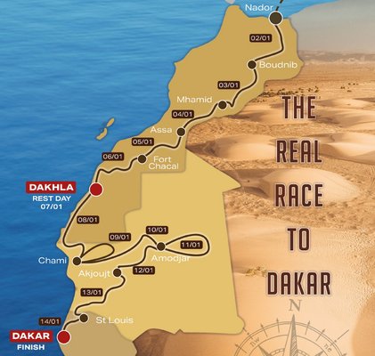 6500 kilométer, 11 állomás, a végcél pedig Dakar. Franciaországból komppal fogunk átkelni, Nadorból indul az afrikai szakasz, Marokkó, Nyugat-Szahara, Mauritánia és Szenegál érintésével.