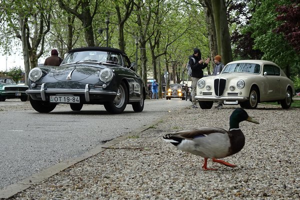 Szeretem előre megtervezni a tesztautók fotózását, és néha még sikerül is megközelíteni az előre elképzelt célt, mégis egy spontán képemet választottam. Az idén még a szokásosnál is esősebb Balatonfüred Concours d'Elegance reggelén tudtam ezt a kacsát belekomponálni a garázsból kiguruló veteránok közé, így nemcsak a Tagore sétány, hanem a Balaton élővilága is képviseltette magát a nyitóképen. Már csak akkor lett volna nagyobb szerencsém, ha a fekete Citroën nem egy Traction Avant, hanem egy 2CV, vagyis egy Kacsa lett volna...