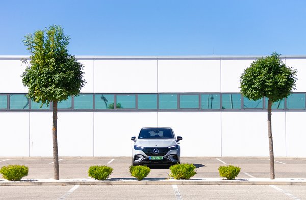 Még nekem is váratlan fordulat volt, hogy az egyik kedvenc képem egy olyan autóról készült, ami felbosszantott. Az EQE SUV küzdött pár komolyabb kihívással, mégis úgy jött ki a lépés, hogy ezzel találtam meg a hibátlan helyszínt, a hibátlan időben. A csodálatosan tiszta időben, a kék ég alatt sikerült meglőnöm egy Wes Anderson film szimmetrikus képkockáját, ami még a magam felé igen kritikus szememnek is kedves.