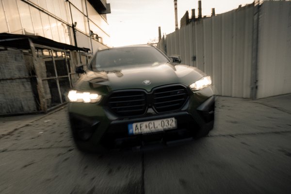 Annyira paraszt, hogy szinte már tetszik. Jól állt neki az industrial környezet és a naplemente. Sok időm nem volt tervezni, de ha elképzeled, hogy alvilági figura vagy és fel kell szedned a szajrét, akkor valami ilyesmi környezetben teszed ezt. És erre az egyik legalkalmasabb eszköz az X6M.