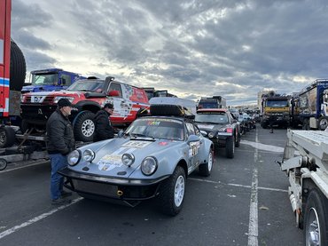 Ellenpólusként persze ott vannak a vadiúj szöcskék, a legtöbb benzines, de a gépátvételen láttam villanyhajtásút is, több portugál és holland csapat is készült, de többségükben francia és olasz nemzetiségű csapatok mérettetik meg magukat. Magyar színekben a Varga Racing Team érkezett, Varga Imre pilóta és navigátora, Toma József Csimpi egy narancsárga Toyota Hilux Overdrive volánja mögött próbálják meg kiautózni a legtöbbet. A Raid túrakategóriaként mi nem ünnepélyesen, az emelvényen át, csak mellette, a főszervező Jean-Louis néhány gondolatával gurultunk át a rajtkockán, de állítólag jelen volt Albert monacói herceg is: őt speciel nem vettem észre.