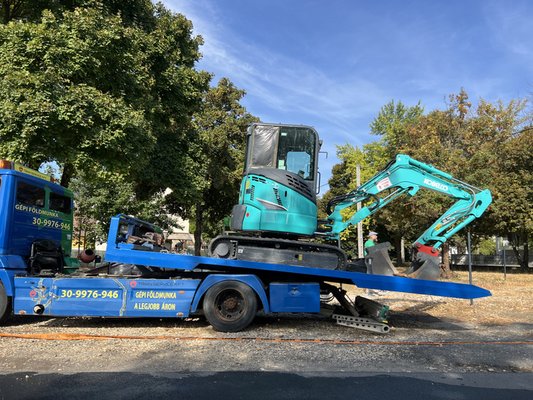 De hiába a ház, meg a kapu, ha nincs körülötte gondozott placc, hiszen az autók nem férnek az irodába, a hómofisz meg nem megoldás. A valaha murvás parkolóként funkcionáló saroktelek arborétumi hangulatban várt minket, úgyhogy napokig csak gyomirtóztunk, majd húztuk egyesével a parlagfüvet. “Épp murvát rendelek!” - említettem a Kopasznak egy hívás során, aki csípőből rávágta: “Ne murvát, az porol, beszopod, andezit kell, vulkáni andezit!”. Oké, csakhogy a fehér murva köbmétere 11 ezer, a sötétszürke andezité pedig 15. Nettó. Nekünk 60 köbméter kell ( kb. 100 tonna), vagyis ugrik egy guriga a kőre, és hol van még a munkagép, ami szétteríti? Jön. Szerdán reggel 9-re.