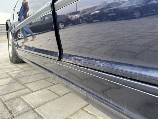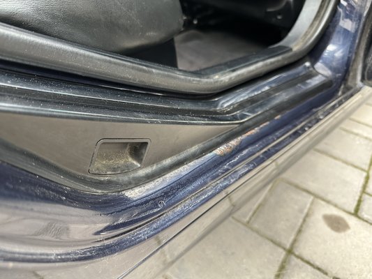Első nekifutásra nem tűnt vészesen rossznak az autó. A műanyagot tényleg megette az idő, az ajtók alját és a hátsó sárvédőívet pedig csipegeti a rozsda. Enyhe hólyagosodás, ez még nem vészes, pedig az E46 sajnos tud rohadni, főleg ha sérül. Kinyitottam a hátsó ajtókat, ott a műanyag elem alól kikandikáló rozsdafoltokra kell figyelni. Tomi szerint ha onnan kilátszik a korrózió, akkor az idom alatt már megritkult a fém, a megnézett autón a jobb oldal már ilyen volt. Érdemes figyelni a hátsó futómű bekötési pontokra is, ezek elrepedhetnek ha nagyon nyúzzák az autót – a BMW ezt később javította egy facelift alkalmával.