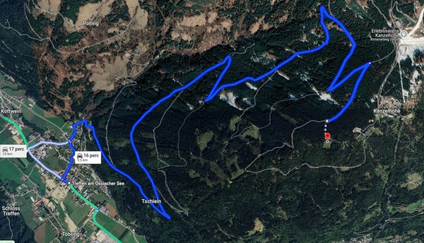 A következő célpont az Ossiacher See fölé magasodó, 1500 méterig felnyúló Kanzelhöhe volt, ahol sikerült egy olyan szállást foglalni, ami egy olyan, elég izgalmas és néhol csodás kilátással rendelkező szerpentinen érhető el, ami másfél sávon és 9 kilométer hosszan tekeredik fel a hegyre, egész 1500 méterig, mögötte a Gerlitzen 2000 méteres csúcsaival.