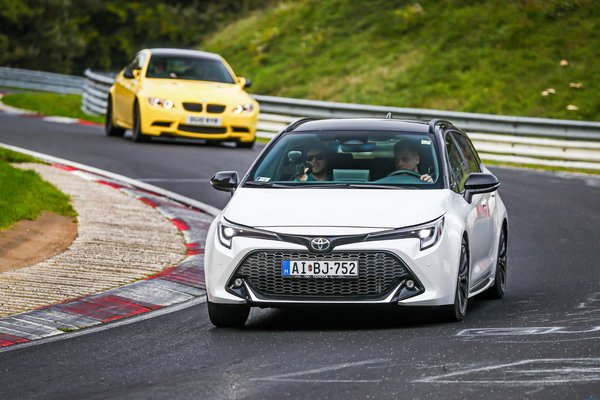 A Nürburgring hangulata utánozhatatlan, szinte vágni lehetett a súlyos autóbuzériát. Az út egyértelmű csúcsa az volt, amikor felgurultam a pályára, hogy a brutális 911 GT3 RS-ek, BMW M4-ek és Nissan GT-R-ek elől menekülve megtegyek egy kört a pályán, életemben először. Részletkérdés, hogy egy hibrid Corolla kombit terelgettem, az élmény így is zseniális volt.