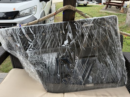 Már csak a bal hátsó ajtókárpit helyett vártunk egy újat, amit végül a lengyel Ebayen lőttem. Vagyis inkább mellette, mert az eladóval privát levelezésben beszéltük meg Whatsappon, hogy szándékaival ellentétben mégiscsak elküldi nekem Magyarországra a modellfrissített longhoz gyártott, évjáratban és színben is stimmelő, 120 centi hosszú papundeklire feszített bőrt és fát. Nem is volt túl sok dolgom, csupán elutalni ötvenezret egy ismeretlen, lengyel nő bankszámlájára, megadni a címet és várni, hogy valami történjen.