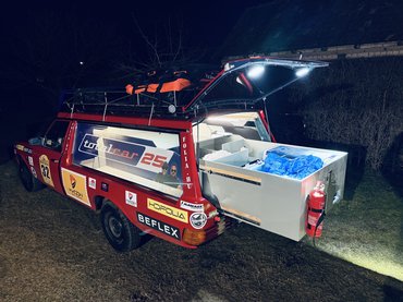 És akkor még nem beszéltünk a világításról. Elöl 1200 méterre világító szúrófények, oldalt keresőlámpák, meg munkalámpák – ha valaki a Szaharában épp keresne egy eltűnt gémkapcsot, szóljon, mert megtaláljuk. Kormány? Végre gyári lett a kicsi, utólagos fa kormány helyén. Ülések? BMW E46 combtámaszos, kényelmes, mert annak van oldaltartása, és a Carpitlabor sikeresen megvarrta. Generátor? Felújítva, hogy egész nap töltse azt a két 100Ah-s akksit, ami a 2500 wattos invertert táplálja. És igen, Starlink is van, mert miért ne lenne? Azon fogjuk feltölteni éjszakánként a nyersanyagokat, hogy ti is átéljétek velünk majd napról napra az utazás minden pillanatát.