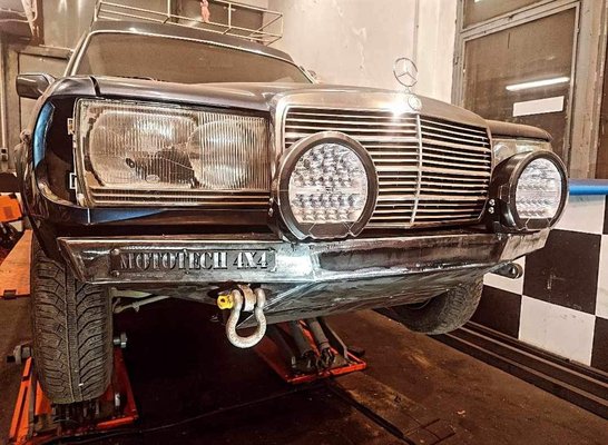 Majd idővel a kocsi átkerült Dunavarsányba, ahol az ország legelszántabb, legfanatikusabb oldtimer Mercis baráti köre dolgozott rajta. Napokig gyűrték a fékrendszert, a futóművet, és igen, még a gyári, taxi rugókat is beszerelték, hogy legalább a hasmagasság ne legyen teljesen szánalmas majd a sivatagban. A végeredmény? A Tájger most úgy áll, mint egy csatába induló tank, és valószínűleg már tudja, hogy nincs akadály előtte - a sebességet leszámítva.