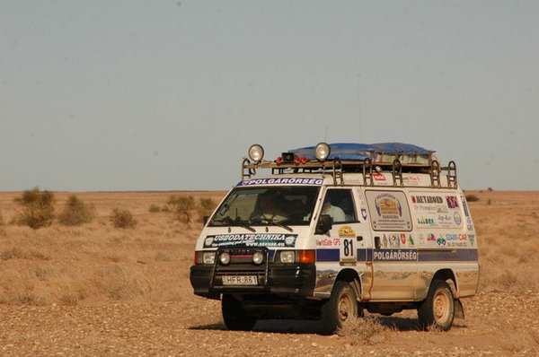 Marokkóban belestünk egy kiszáradt folyómederbe, eltört a kapcsolóagyban egy fémgyűrű. Zagorában kicserélték. Komoly baja nem volt, eszembe nem jutott, hogy nem érünk le Bamakoba. Pedig mint rajt előtt kiderült, rozsdás volt az alváza. A lyukat rajt előtt meghegesztettük.