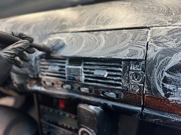 Szilveszter délutánja volt, amikor a Pólus Center parkolójából átparkoltam Gyömrőre, az ER Cleaner garázsának kapujába. „Gyííí, ez jól odavan” – horkant fel a mester, amikor szakmai szemeit először végigfuttatta a több, mint ötméteres testen. A Bálna ugyanis csak képeken festett jól, az évek és a fizikai behatások sajnos megtették a hatásukat, vagyis közelebbről vizsgálva már egyáltalán nem volt rózsás a helyzet. A motorháztető fényezése mint a smirgli, a napfénytető hosszában karcos, a krómok mattak, a felnik szintúgy, a fabetétek karcosak, a bőr zsíros és fényes, a padlókárpit pedig egyenesen fekete volt, holott szürkének kellene lennie.