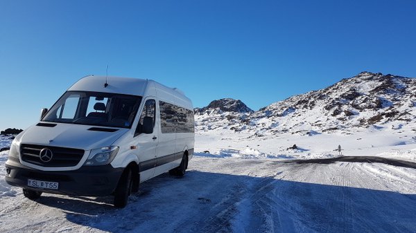Izlandon élek és dolgozom. 2015 nyarán vettem egy új, 16+1 személyes Mercedes Sprinter buszt.