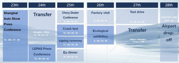 Mivel az importőrségi kérdés jelen pillanatban még nem tisztázott, én kizárólag a kínai partnerrel kommunikáltam, aki ugyan eleinte szűkszavú volt, végül elég részletes programot küldött, mutatom is a lenti képen a tervezett időbeosztásunkat.