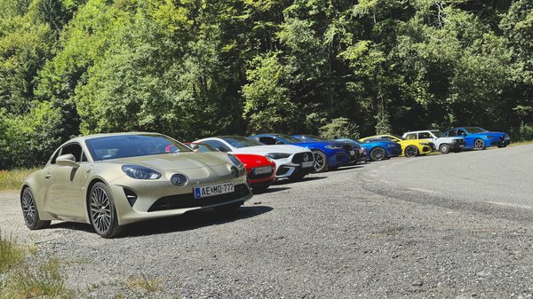 Kempingező daciás csapat mellett húzunk el a kis konvojunkkal, ami annyira vegyes, hogy az Alpine A110, Renault Clio RS, BMW M5, Golf R, Audi RS3 sorban nem a Mustang lóg ki legjobban, hanem a kocka Panda, ami lihegve ugyan, de itt-ott azért utolér minket. Átlagosan 6 százalékos a szintemelkedés kilométerenként, de néhol eléri a 26-ot is, szóval kell nyomni a gázpedált, és a magasság miatt szívómotoros autóknál gondolni kell a teljesítmény-vesztésre is. A Mustang 5,0 literéből és 446 lóerejéből érezhetően nem vesz el semmit, de a Clio 2,0 literesének már kell az 1-es fokozat a visszafordítókban, különben gyengélkedik.