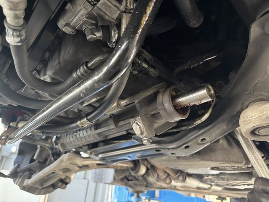 Pár dolgot kell leoldani csak hozzá a haslemez után. Két olajcső, két összekötő gömbfej és két csavar, ami az első bölcsőhöz rögzíti, meg a kormányoszlop Hardy tárcsája, és le is pottyan a helyéről. ATF-III-as olaj helyett Peti javaslatára II-essel töltöttük fel, amivel alapvetően is érezhetően sokkal könnyebb a rásegítés és a kormánymű elsőre érzésre tökéletesen működik is. Pontos, gyors és tartja az egyenest, plusz a remegéseket is sokkal kevésbé adja át. Siker!